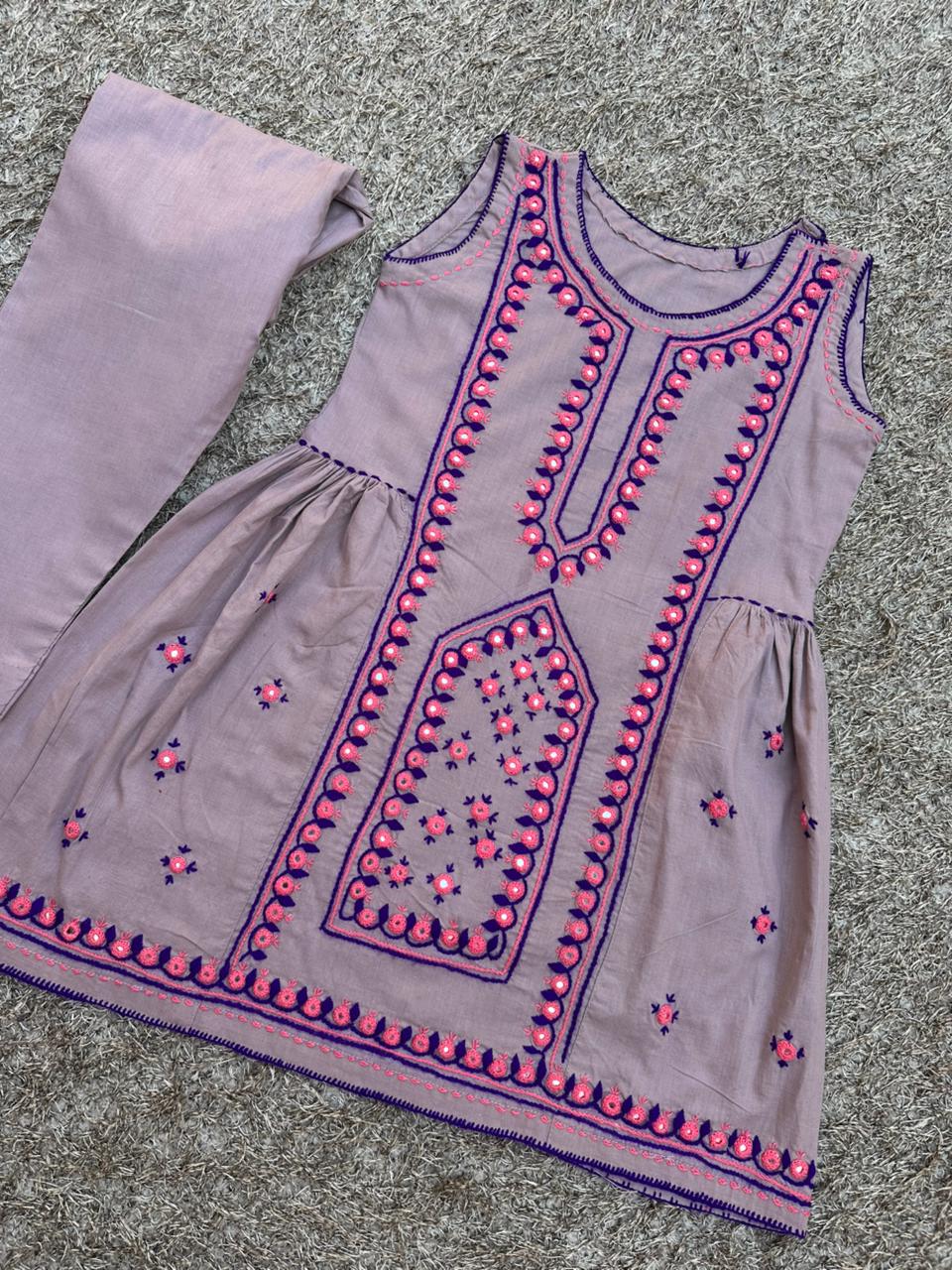 Elegance in every thread — Mauve lawn dress adorned with dark purple and light pink handcrafted embroidery, finished with delicate mirror work ✨ A perfect pick for timeless charm!