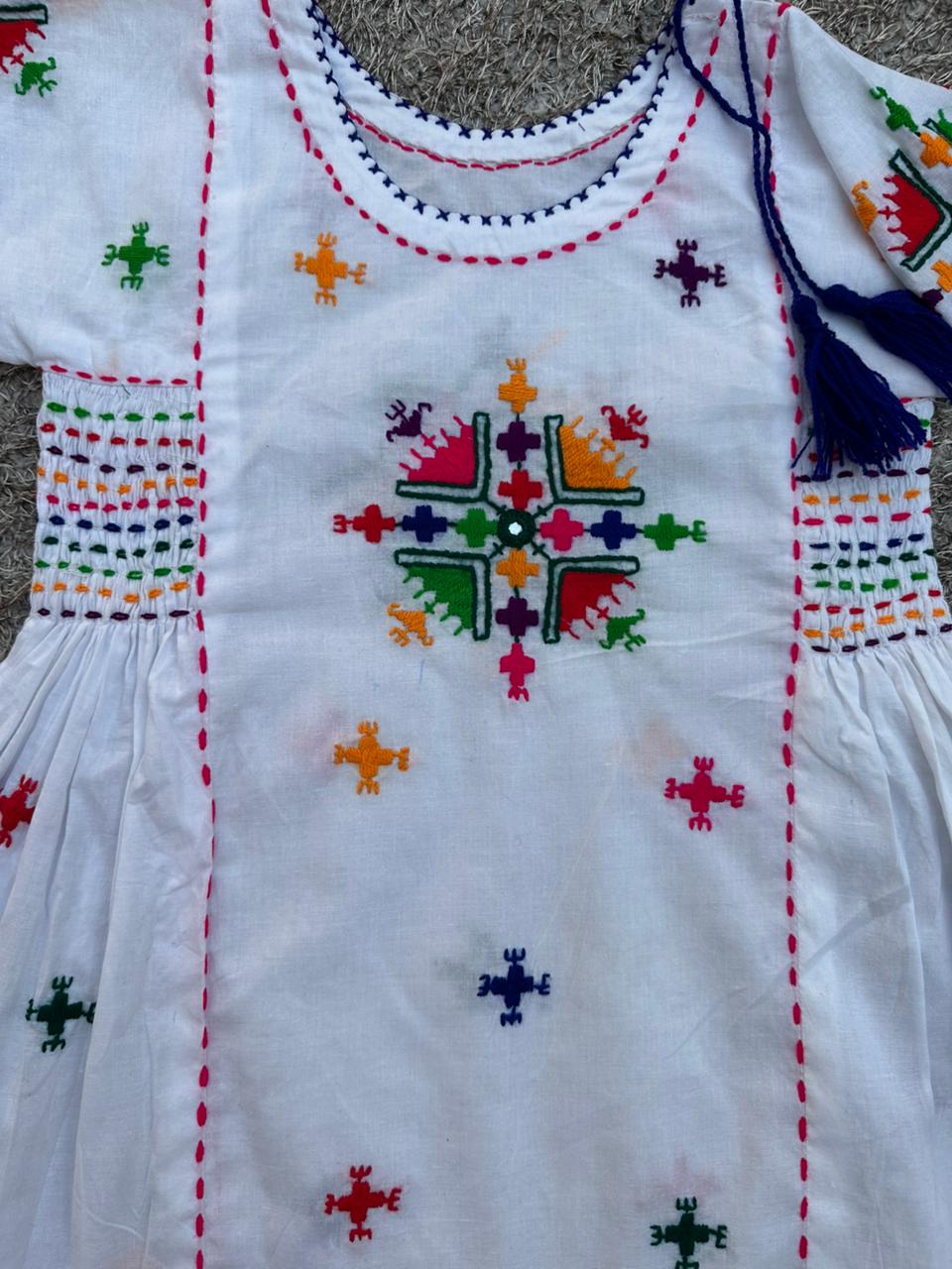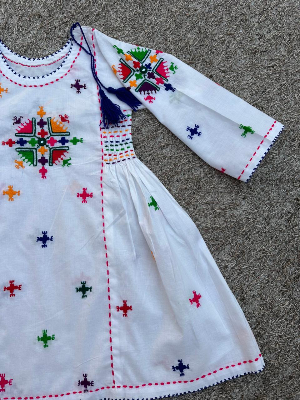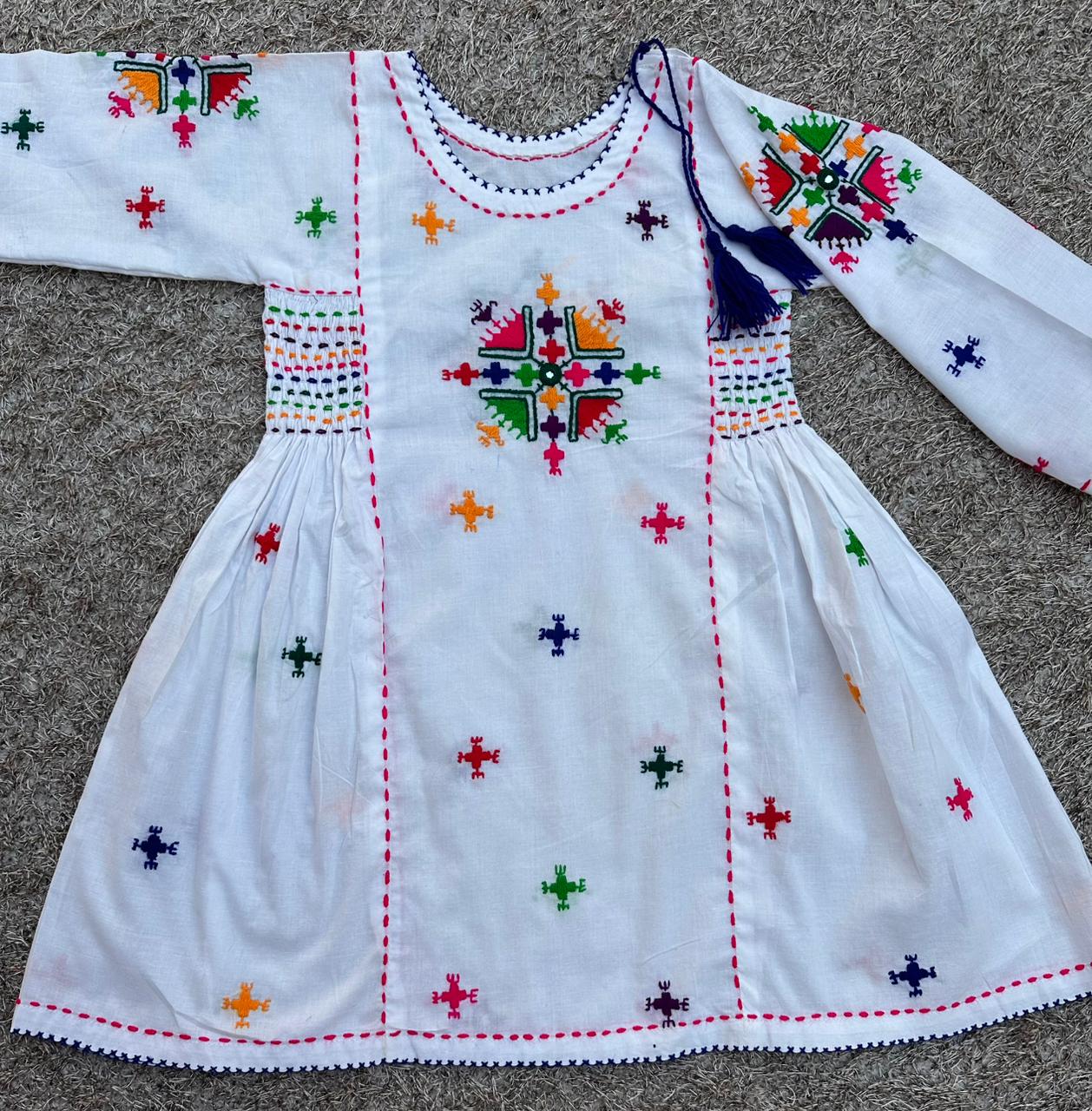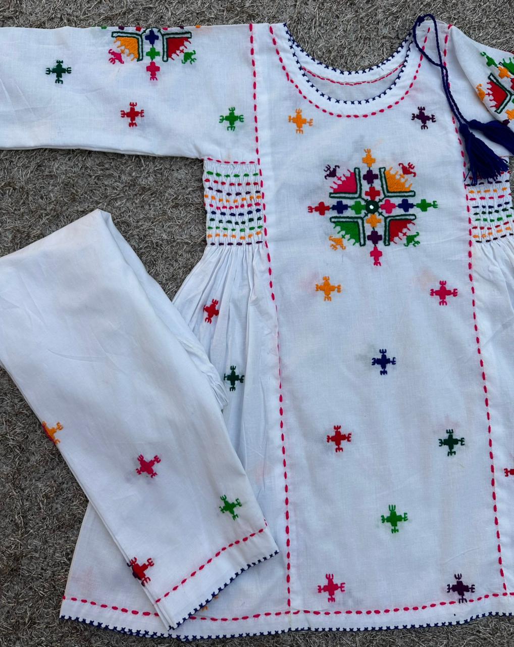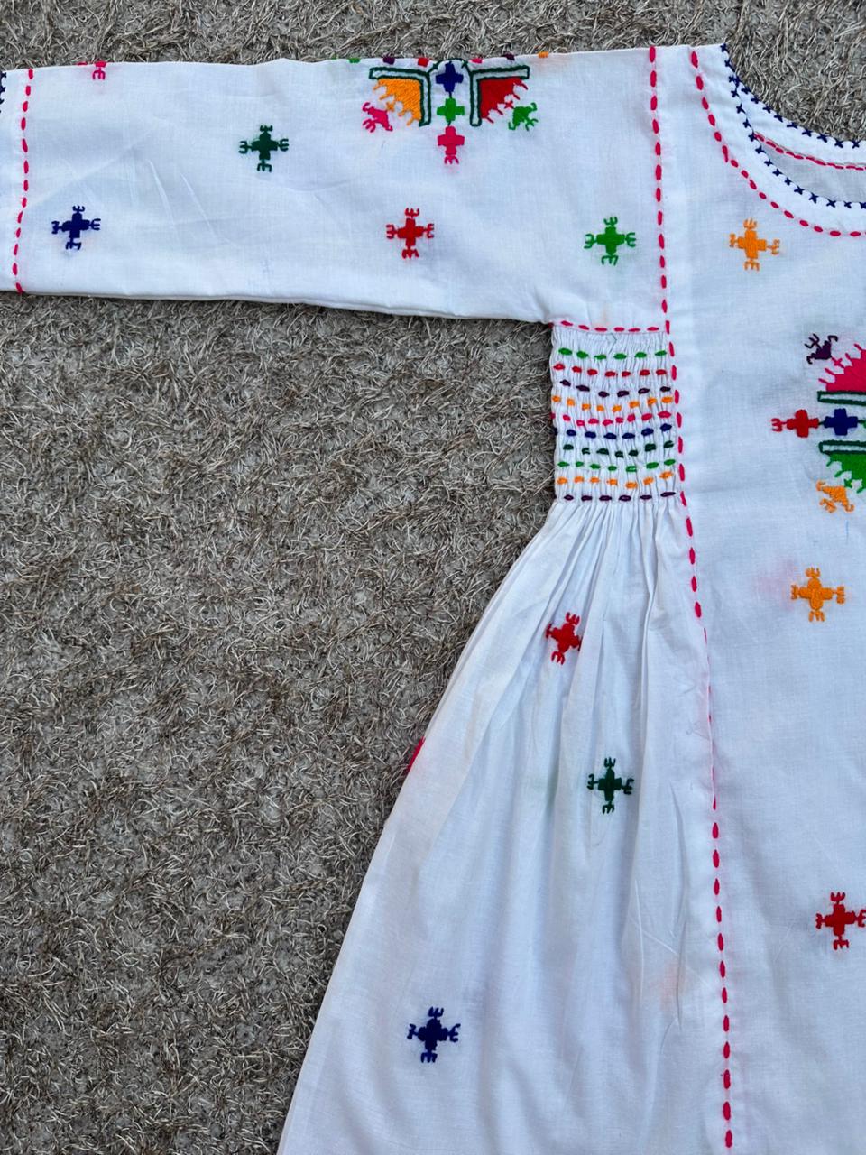 Grace meets tradition in our Noor-e-Bahar 2-piece off-white frock style dress. Crafted from premium lawn fabric, this outfit features intricate handmade embroidery in vibrant multicolor threads, beautifully spread across the front and full sleeves. Paired with a matching embroidered trouser, it’s the perfect blend of elegance and charm for festive or semi-formal occasions. A timeless piece that speaks of pure craftsmanship.