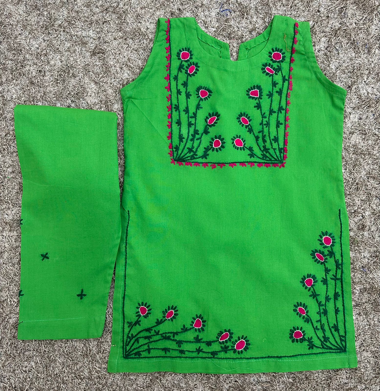 Step into bold elegance with Zamarud Shine — a stunning parrot green dress featuring dark green and shocking pink hand embroidery. The vibrant color contrast brings life to the fine lawn fabric, while the intricate embroidery adds a touch of luxury. Perfect for daytime functions or festive evenings, this dress is a true celebration of color and craftsmanship.